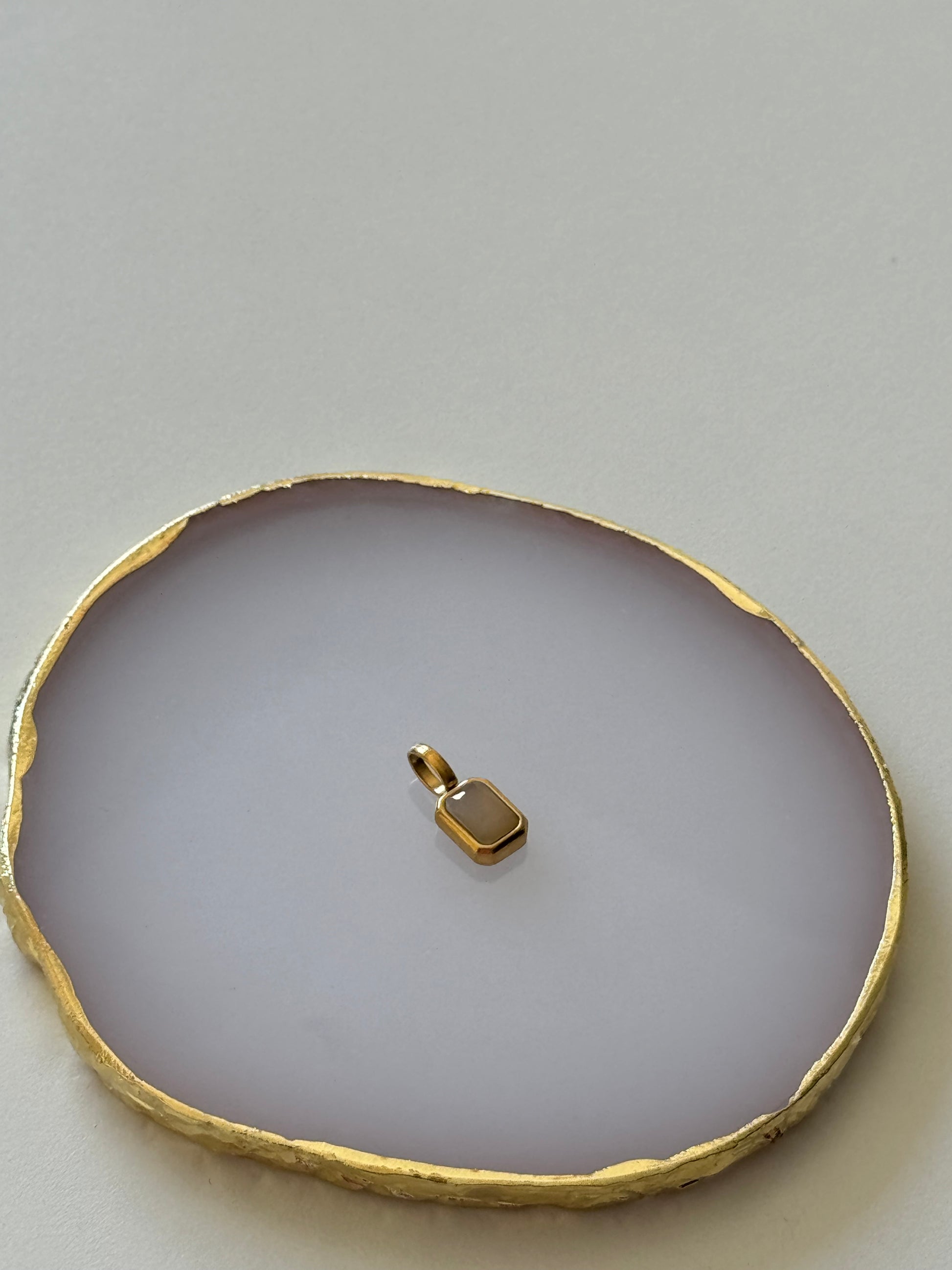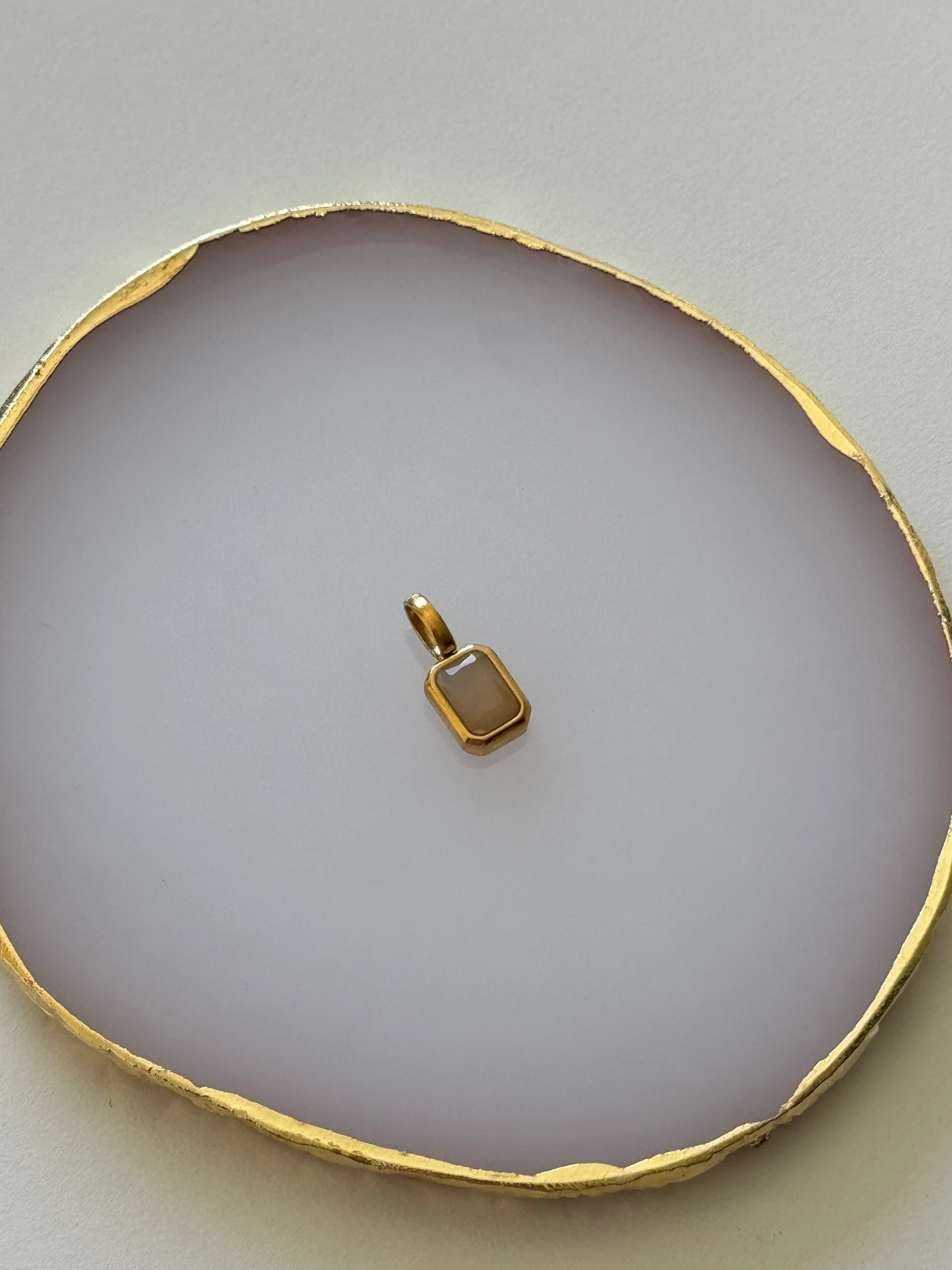 This minimal charm features a milky, mist-toned cubic zirconia set in a warm 18k gold-plated bezel. Subtle yet sophisticated, it pairs beautifully with chains or alongside other charms for a personalized look.