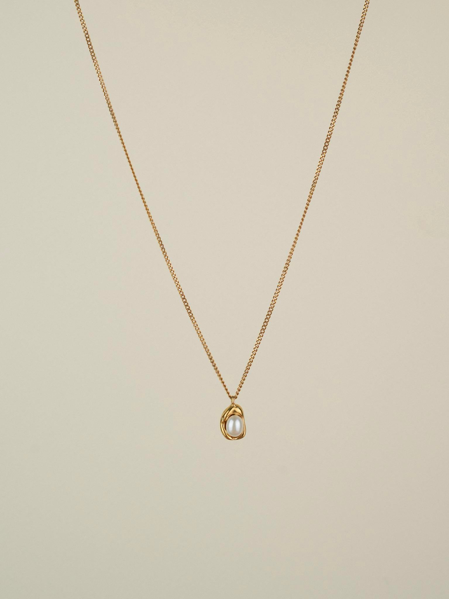 This pendant features a freshwater pearl cradled in a sculptural gold-toned setting, creating a perfect blend of nature and design. Each pearl is unique, just like the one who wears it.
