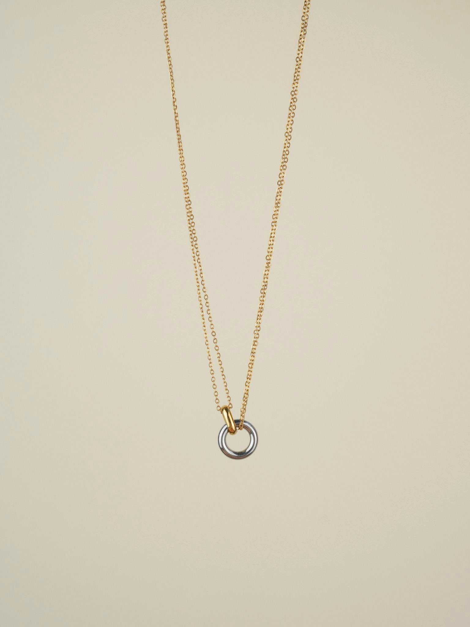 The Unity Loop Necklace captures the power of connection through its bold, two-tone circle design. A high-polish silver ring entwined with a warm gold loop forms a timeless symbol of harmony, duality, and strength in simplicity.